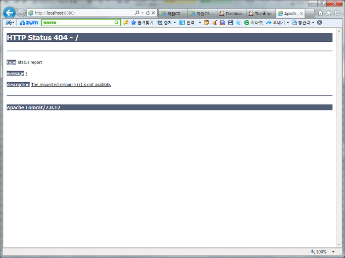 !. 참고로 설치를 다하고 자동으로 브라우져가 열리는데 404 에러가 떳다.