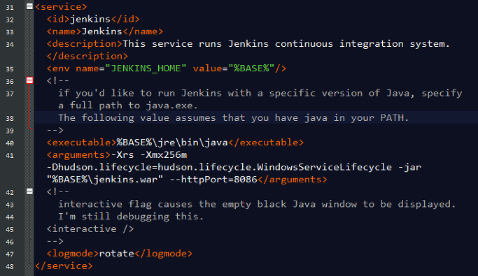 jenkins.xml 을 편집기로 연 후