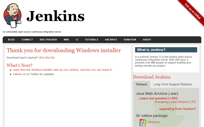 1. 먼저 Jenkins 사이트에서 Windows 설치파일을 다운로드 받는다.