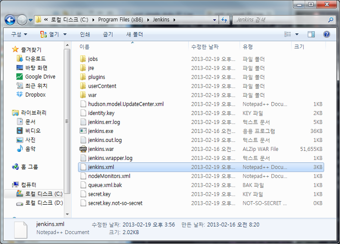 Jenkins 가 설치된 경로(C:\Program Files (x86)\Jenkins)로 가서