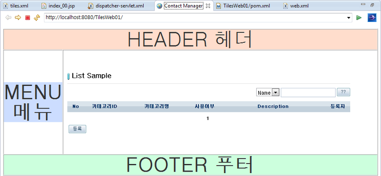 각각의 영역(header, menu, content, footer)에 삽입할 페이지를 만들어야겠죠?